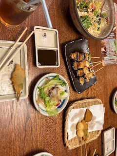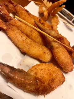 こんばんは( ¯꒳¯ ) もう扇風機が必要かもしれない。。掃除しないとー 地元で元バイト仲間と飲み会 荒れた串カツ達。なんか揚げすぎ? カニハサミのツメがポキポキ折れるという現象がおきてました 土曜日やったので22時出勤にしてたんやけど 飴ちゃんいただいた。ちょっと記憶がさだかではないんですがその場で食べた気する🤔 最後日本酒飲んでたんは覚えてる🫡 また明日からよろしくお願いします🙏