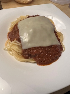 たまに食べたくなるパスタ ボロネーゼ チーズ乗せ あとケールサラダ おうちご飯でした😊