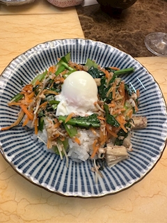 ビビンパディジュ完成‼️ 温泉玉子完璧👌 ビビンパは冷蔵庫にある 残り物でできるからたまにします😄