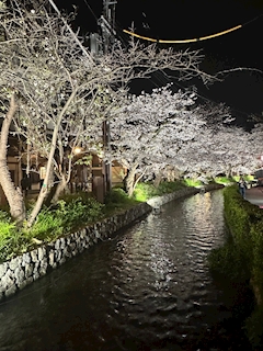 雨が降る前の満開の桜 京都の高瀬川 夜桜も素敵でした🌸 綺麗な花も一瞬 私達の人生も同じですね 思いっきり悔いなく 綺麗な花を咲かせ散っていかないと 人生あっという間