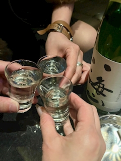 呑んべゑ行ってきたよ♡ 日本酒いつめんで(୨୧ ❛ᴗ❛)✧ はーちゃんの撮り方がオシャレで真似したー! 勝手に看板メニューやと思ってる月見つくね♡ 二日酔いななっちゃんに無理やり日本酒飲ませた( ◜ω◝ ) 楽しい出勤前飲みでした♡