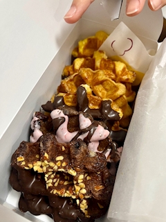 こんにちは( ¯꒳¯ ) 京都駅ってあんまり行かない。 からこそ! マネケンのワッフル買って帰った🧇 お子達めっちゃ喜ぶの可愛い♡ 全部バラバラの味買ってったんやけどね。 きょうだい居たらわけあえるしいいわぁ✨️って。なんて良い事いうの🥺 3人で仲良く食べてはって癒されました(* ´ ` *)ᐝ