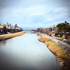 今夜は早めに祇園入り💪 四条大橋から鴨川を見ながら移動です🚶➡️ 鴨さん居ました🦆