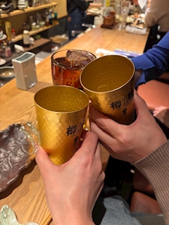 呑んべゑ行ってきたよ♡ 日本酒いつめんで(୨୧ ❛ᴗ❛)✧ はーちゃんの撮り方がオシャレで真似したー! 勝手に看板メニューやと思ってる月見つくね♡ 二日酔いななっちゃんに無理やり日本酒飲ませた( ◜ω◝ ) 楽しい出勤前飲みでした♡